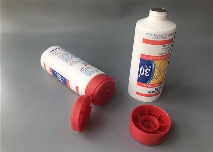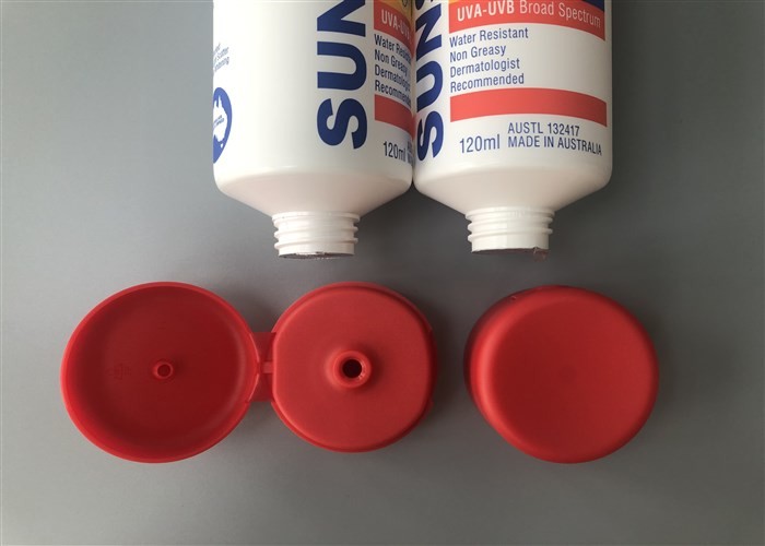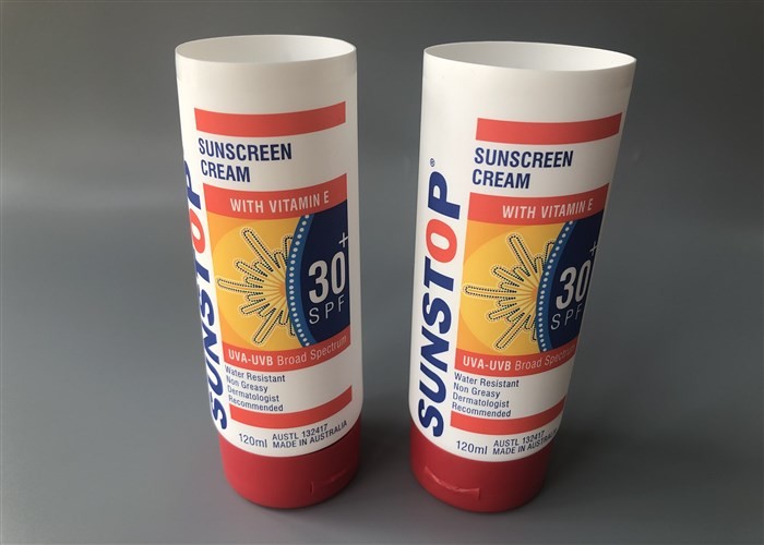 Tube cosmétique en plastique coextruded mat blanc de crème de protection solaire avec le chapeau rouge mat 120ml de tp de secousse
